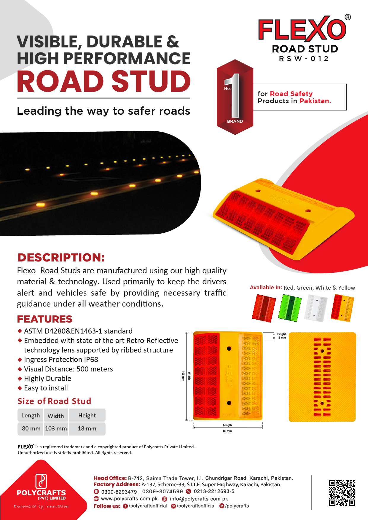 Flexo Road Studs are manufactured using our high-quality material & technology. Used primarily to keep the drivers alert and vehicles safe by providing necessary traffic guidance under all weather conditions.