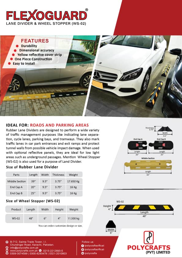 Rubber Lane Dividers are designed to perform a wide variety of traffic management purposes like indicating lane separation, cycle lanes, parking bays, and tramways. They also mark traffic lanes in car park entrances and exit ramps and protect tunnel walls from possible vehicle impact damage. When used with optional reflective panels, they are ideal for low light areas such as underground passages.